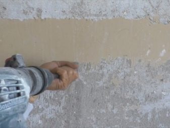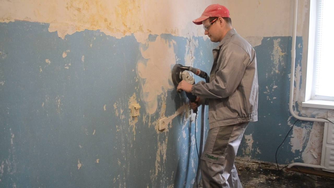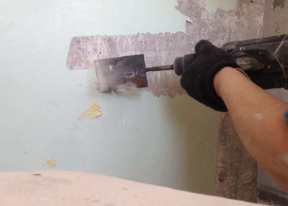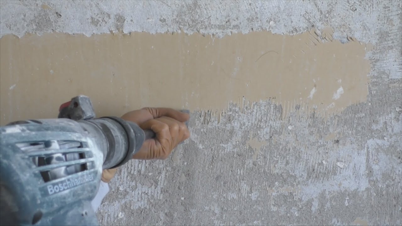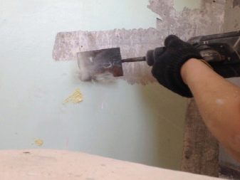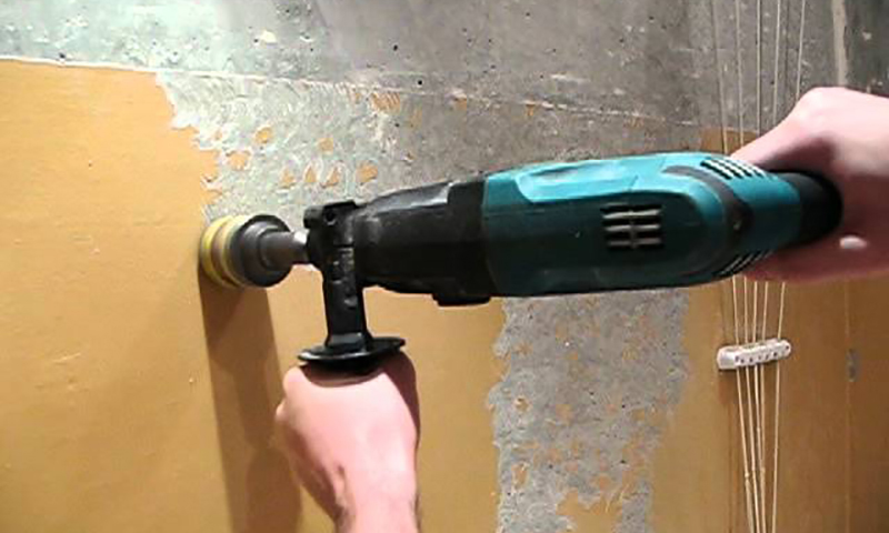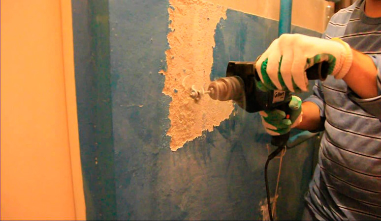Vorher ist es notwendig, die Perforationskraft einzustellen, indem ein Modus gewählt wird, in dem die Wand selbst nicht beschädigt wird.Jetzt können Sie die alte Beschichtung sicher umwerfen. Ein starkes Werkzeuggeräusch ist ein Nachteil dieser Methode.