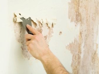 Wenn sich die Farbe ablöst, kann sie entfernt werden. Bereits unnötige Nachbearbeitung nehmen Sie einen Spachtel oder ähnliches Gerät und trennen Sie es von der Betonoberfläche.Es ist leicht in verschiedenen Größenschichten zu entfernen. Die befreiten Wände werden mit harten Schwämmen oder Sandpapier mit einem großen Korn gereinigt. Dann ist es gut getrocknet, und erst dann wird es grundiert und beginnt die Nachbearbeitung..