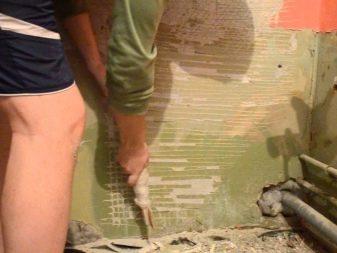 Einer der Wege ist manuell, es ist ziemlich mühsam und laut, es erfordert die Verwendung eines Spatels, eines Hammers oder eines Beil. Aber das Ergebnis einer solchen Arbeit kann gefallen, die Wände erhalten eine flache und saubere Oberfläche. Bei solchen Arbeiten ist es besser, ein geschliffenes Werkzeug zu verwenden, es wird sogar die Arbeit erleichtern.
