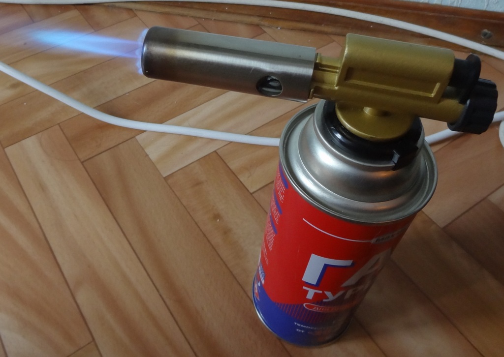 - Den Lack auch mit einer Lötlampe vorheizen. Die Aktionen während der Reinigung sind ähnlich wie bei einem Haartrockner, aber hier muss verhindert werden, dass das Feuer brennt. Manche benutzen das Bügeleisen, die Aktion findet durch die Backfolie statt.