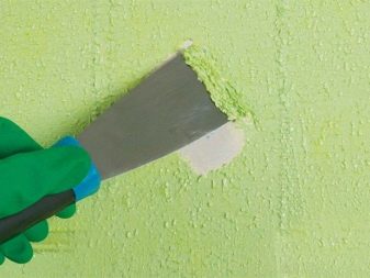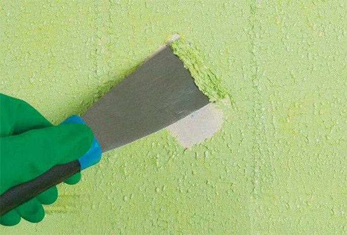 Chemische Spülmittel sind nicht immer anwendbar. In einigen Fällen können sie wegen der Besonderheiten der bemalten Basis nicht verwendet werden, oft werden die Verbraucher auch durch den scharfen Geruch und die Notwendigkeit zusätzlicher finanzieller Ausgaben abgehalten. In dieser Situation können Sie die altmodische Methode anwenden und die Farbe abreißen, aber Sie sollten darauf vorbereitet sein, dass ein solcher Eingriff viel Zeit und Mühe in Anspruch nimmt.