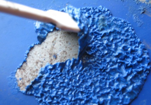 - Bearbeitung mit Sandpapier oder sogar eine scharfe Axt (für Ölfarbe) erweist sich als der billigste Weg, aber Sie sollten darauf vorbereitet seindass das verwendete Werkzeug schnell abgestumpft wird und die Aufgabe schwierig ist.