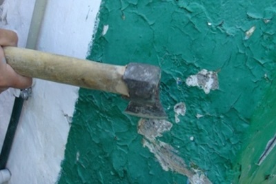Über der Ölfarbe wird empfohlen, Einschnitte mit einer Axt durchzuführen, die teilweise eine Delaminierung hervorrufen und teilweise zu einer besseren Haftung der auf der alten Schicht aufgetragenen Grundierung beitragen.In diesem Fall ist es besser, als Grundierung den sogenannten Betonkontakt anzuwenden, der speziell für solche Zwecke entwickelt wurde.