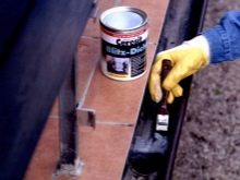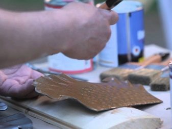 Einzige Bedingung: Vor Arbeitsbeginn sollten Materialien immer mit einer Grundierung behandelt werden. Wenn die Hammerfarbe auf Holz aufgetragen wird, wird sie mit einer Acrylgrundierung vorbehandelt. Wenn es trocknet, erzeugt es einen Film, auf dem die Beschichtung auf einer gleichmäßigen dauerhaften Schicht haftet.