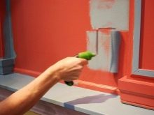 - Es wird empfohlen, die Walze nicht in die Farbe einzutauchen, sondern die Substanz in kleinen Portionen darauf aufzutragen und dann auszuwalzen.