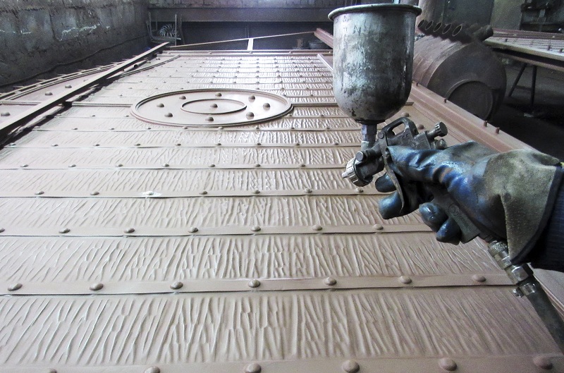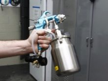 Wenn die Oberfläche groß ist, wird ein spezielles Gerät verwendet - die Spritzpistole. Seine Verwendung erfordert, dass eine Substanz eine bestimmte Dicke hat. Ein Verdünnungsmittel wird zur Verdünnung verwendet, indem es in einem Verhältnis von 2: 1 zugegeben wird. Diese Kombination ist geeignet bei einer Temperatur von ungefähr zwanzig Grad Celsius, aber wenn die Temperatur niedriger ist, dann werden die Anteile eingestellt. Um verschiedene Teile der Maschinen zu behandeln und sie vor Rost zu schützen, wird die Farbe mit einem Lösungsmittel im Verhältnis 9: 1 verdünnt.