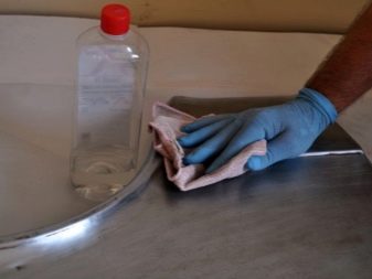 Vor Beginn der Arbeiten die Oberfläche reinigen oder gründlich abwischen. Verwenden Sie dazu eine Vielzahl von Lösungsmitteln, Aceton oder "White Spirit". Der Grad der Oberflächenbereitschaft ist leicht zu überprüfen, wenn Sie ein Blatt dünnes Papier darüber halten - es sollte keine Spuren geben. Wenn dies der Fall ist, sollte die Reinigung wiederholt werden.