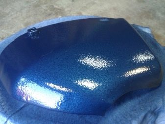Hammerfarbe hat eine bemerkenswerte Eigenschaft - sie kann Unregelmäßigkeiten und Fehler auf der Oberfläche von Produkten verbergen. Durch das Vorhandensein von Aluminium und Silikon trocknet die Substanz aus und verleiht der Oberfläche eine originelle, ästhetisch ansprechende Optik. In diesem Fall erhöht sich die Rückprallelastizität des behandelten Materials um ein Vielfaches.