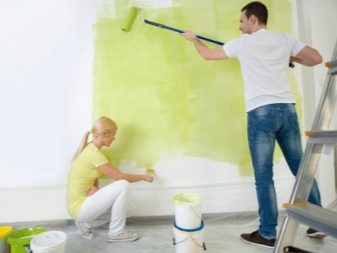 Solche Farben werden in Form von Mischungen auf Wasserbasis hergestellt, bei denen die Verbindung Polymerlatex oder Acryl sowie Mineralverbindungen mit Alkydharzen ist.