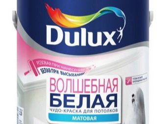 Neben Farben für Wände produziert der Hersteller eine Reihe von Produkten für die Decke. Es ist bekannt, dass beim Bemalen der Deckenflächen häufig schlaffe und hässliche Streifen auftreten. Aufgrund der positiven Eigenschaften von Dulux-Lacken beseitigen sie diese Schwierigkeiten, da sie gut passen und vorhandene Defekte abschirmen. Feuchtigkeitsbeständige Verbindungen ermöglichen es, das Auftreten von Ruß an der Decke zu vermeiden, da sie regelmäßig gereinigt werden können, ohne die ursprüngliche attraktive Optik zu beeinträchtigen.