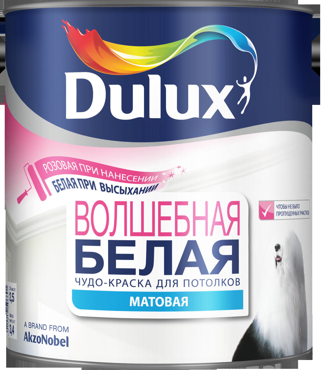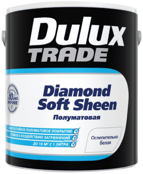 Dulux Diamond Soft Sheen - Wasserdispersion, halbmatte Mischung kann sowohl an Decken als auch an Wänden aufgetragen werden. Es verdeckt perfekt die Mängel der Basis, fast geruchlos, bildet eine glatte, glatte Beschichtung. Aufgrund seiner optimalen Viskosität tritt es nicht aus.