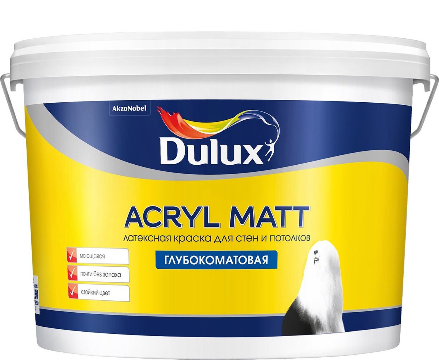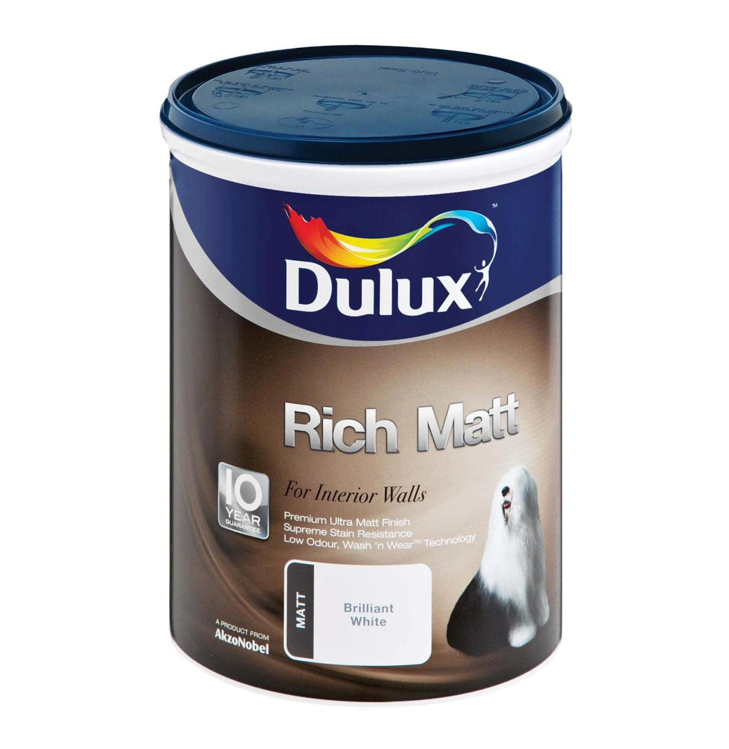 - Tiefe Latexfarbe Dulux Acryl matt es kann seine Farbe für eine lange Zeit behalten, verbläßt nicht, es wird für Innen- und Außenwände sowohl für mäßig feuchte Räume als auch für Räume mit einem hohen Feuchtigkeitsindex verwendet. Die Beschichtung wird ohne Verwendung von Geld mit reinem Wasser gewaschen.
