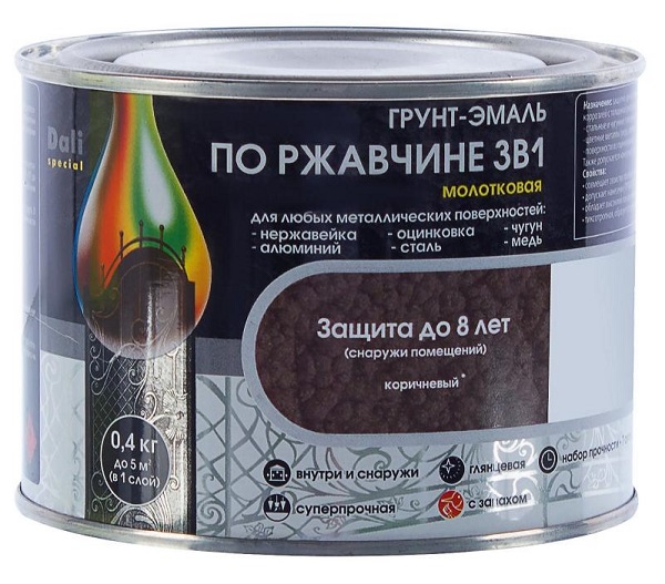 - Einzigartiger Grundieremail Dali Entfernt nicht nur sichtbaren Rost von der Metalloberfläche, sondern schützt ihn auch vor dem Aussehen. Kundenrezensionen dieses Produktes bestätigen seine hohe Leistungsfähigkeit, sparsamen Verbrauch und eine breite Palette von Farben.
