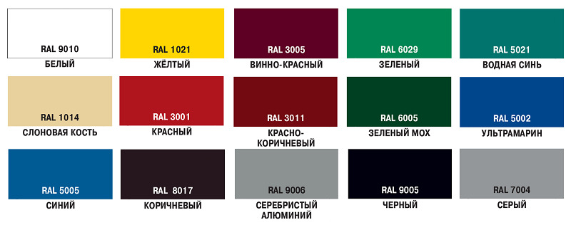 Die Farbpalette der Farbtöne solcher farbgebenden Schutzmischungen ist recht breit. Farben der folgenden Farben gelten als die beliebtesten und gefragt: