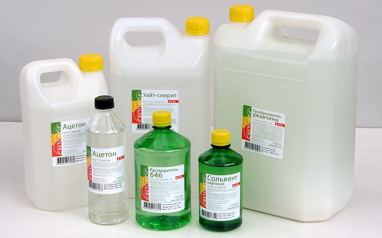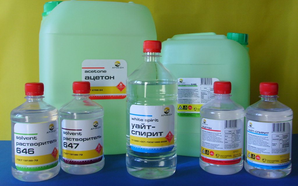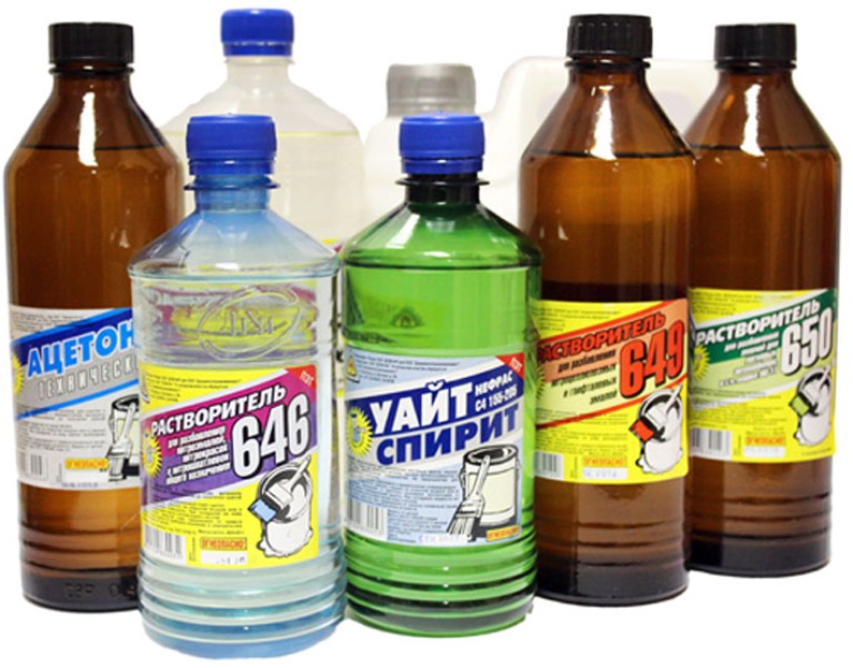 Als Lösungsmittel für Acrylfarbe verwendet Benzin, Aceton, Testbenzin und Kerosin. Seine Wahl hängt direkt von der zu reinigenden Oberfläche ab.
