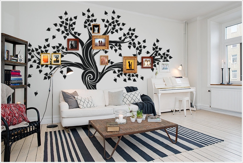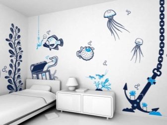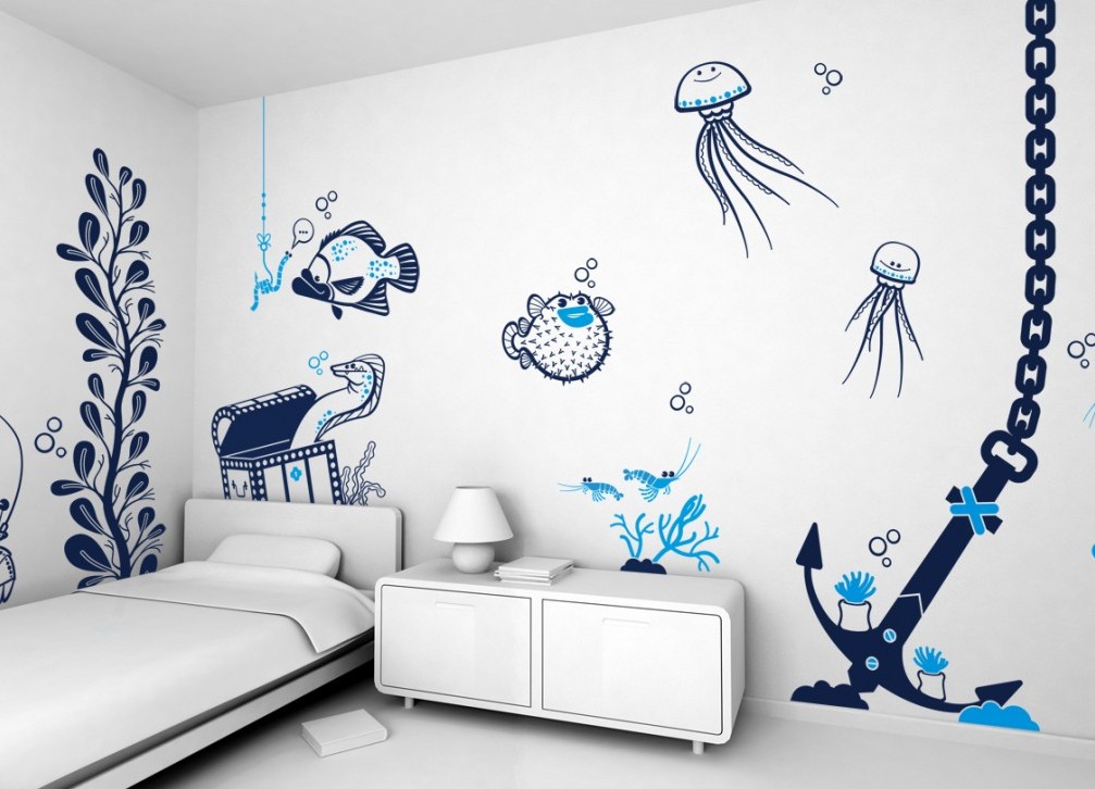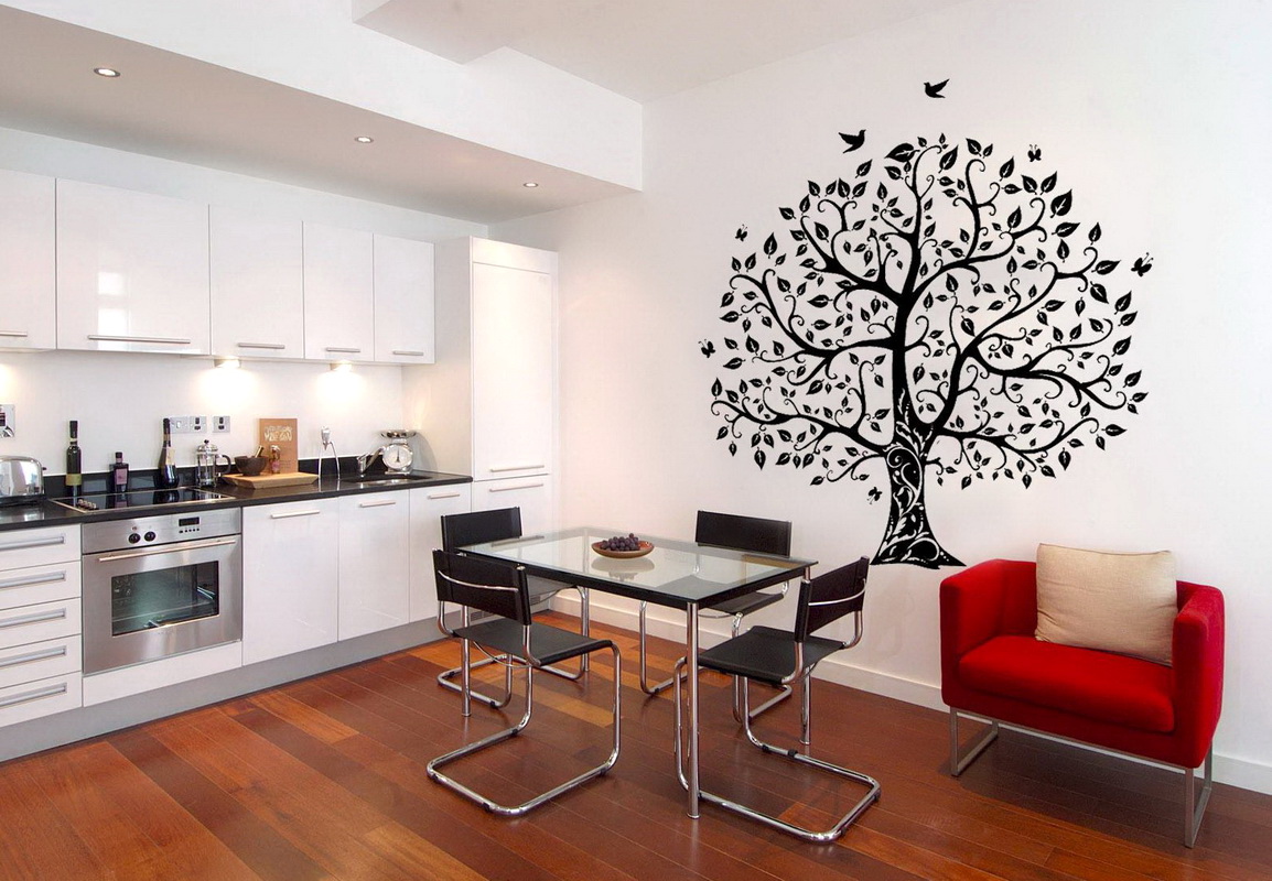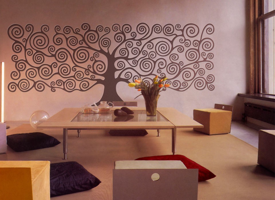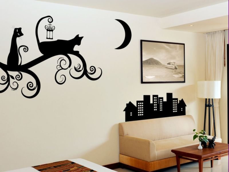 Einfache monochrome Bilder sind ebenfalls beliebt. So zeichnen sich in Kinderzimmern häufig die Silhouetten von Märchen- und Zeichentrickfiguren ab, im Schlafzimmer und Badezimmer sind Bilder von Schmetterlingen, Blumen, Fischen und Bäumen angebracht, und für das Wohnzimmer können Bilder von Stadthäusern oder abstrakten Wildtieren hervorragend sein. Sie können sowohl Standard-und typische Zeichnungen, als auch sehr ungewöhnliche finden - zum Beispiel dekorative Bäume, Bilder von Vögeln, eine Karte der Welt und Silhouetten von Menschen.