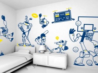 - Mit Hilfe von Zeichnungen aus Mustern können Sie das Kinderzimmer einfach dekorieren. Der Prozess des Zeichnens ist einfach, so dass Sie sogar gemeinsame Arbeit machen können. In den Geschäften finden Sie eine Vielzahl von Schablonen für das Bild von Kinderzeichentrickfiguren.
