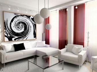 Jetzt können Sie grafische dekorative Bilder von Blumen, Bäumen und Zweigen finden, die ganz organisch in den Raum im High-Tech-Stil passen.