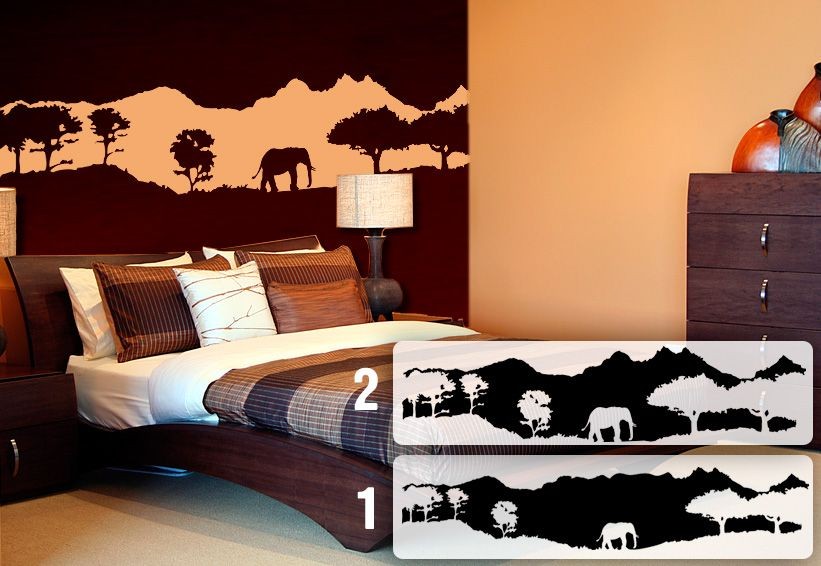 - Mit komplexen Schablonen können Sie mehrere Farben verwenden. Für solch eine ungewöhnliche Farbgebung der Wände eignen sich komplexe Landschaften und ausgefallene Muster. Manchmal wird eine Liste empfohlener Farbtöne an die Schablone angehängt, und manchmal sollten die Farben unabhängig voneinander ausgewählt werden. Auch wenn Sie ein helles Bild haben, ist es sehr wichtig, dass die Farben miteinander harmonieren und nicht zu auffällig sind. Wenn Sie mit Schablonen arbeiten, bei denen mehr als eine Farbe verwendet wird, ist es besser, Farbe mit einem kleinen Pinsel aufzutragen. Es ist wichtig, dies sehr sorgfältig zu tun, ohne über die Ränder der Umrisse hinauszugehen.