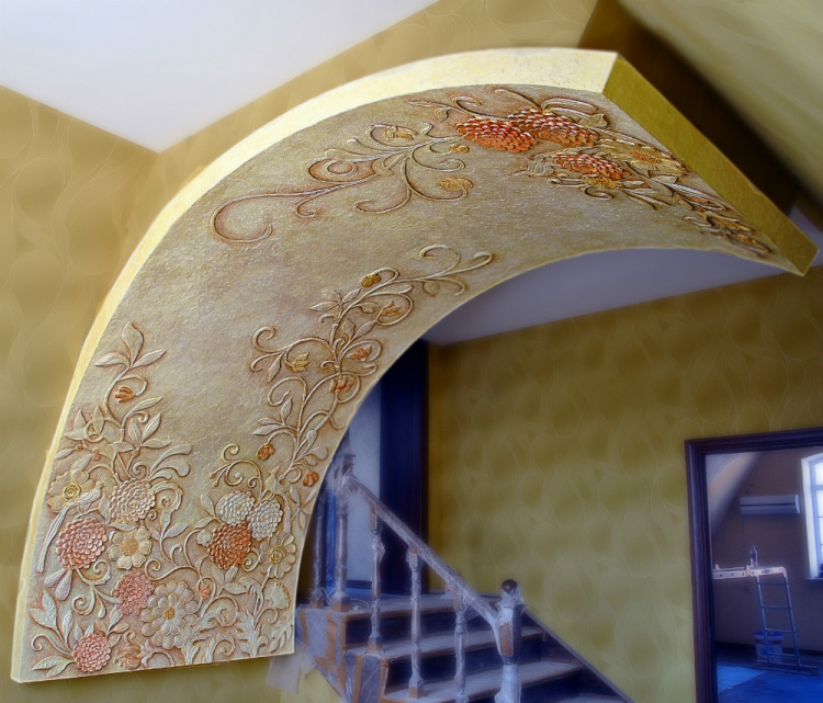 - Wenn Sie im Haus Bögen, Trennwände oder Balken haben, die den Raum in einem geräumigen Raum abgrenzen, können sie auch anhand von interessanten Bildern leicht identifiziert werden.