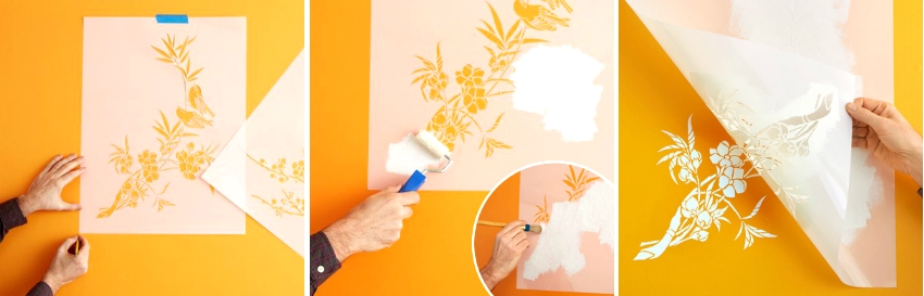 Wenn Ihnen Ihr Interieur zu langweilig und eintönig vorkommt, können Sie es leicht auffrischen, indem Sie an den Wänden Zeichnungen machen. Schablonen können auf glatten Tapeten zum Bemalen oder an den Wänden selbst verwendet werden, indem sie nach dem Verputzen mit Farbe bestrichen werden. Darüber hinaus kann es bei Mustern auf Schablonen sehr interessant sein, mit Textur zu schauen und zu malen, zum Beispiel mit Sprühen oder mit dekorativen Strichen.