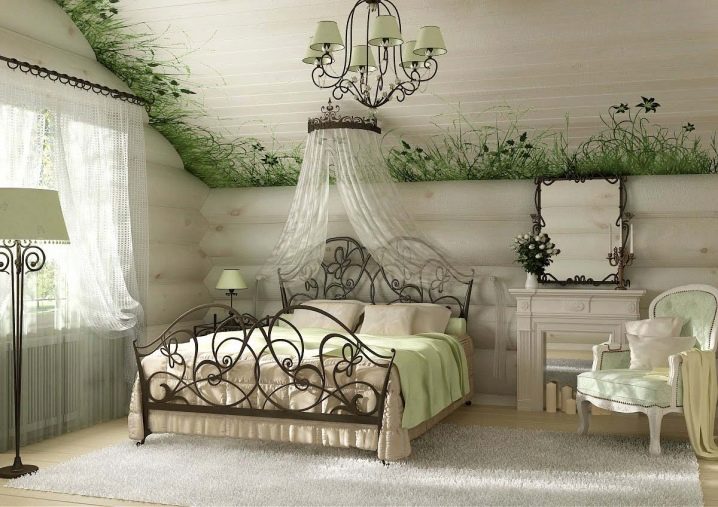 - Manchmal werden Bilder nicht nur an den Wänden, sondern auch an Spiegeln, Holzschränken und sogar an der Decke angebracht. So können Sie die Gestaltung des gesamten Raumes in einem einzigen Stil aushalten.