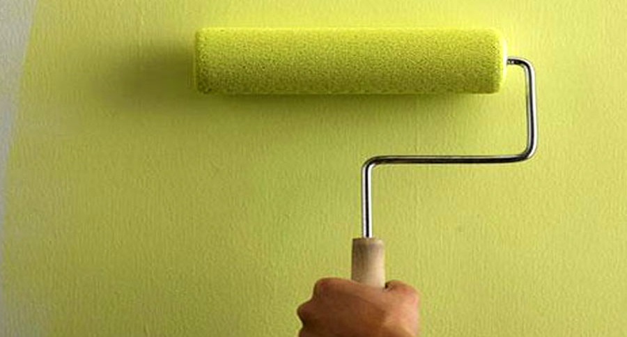 Es ist besser, die Farbe mit einer Rolle oder einem großen Pinsel aufzutragen.