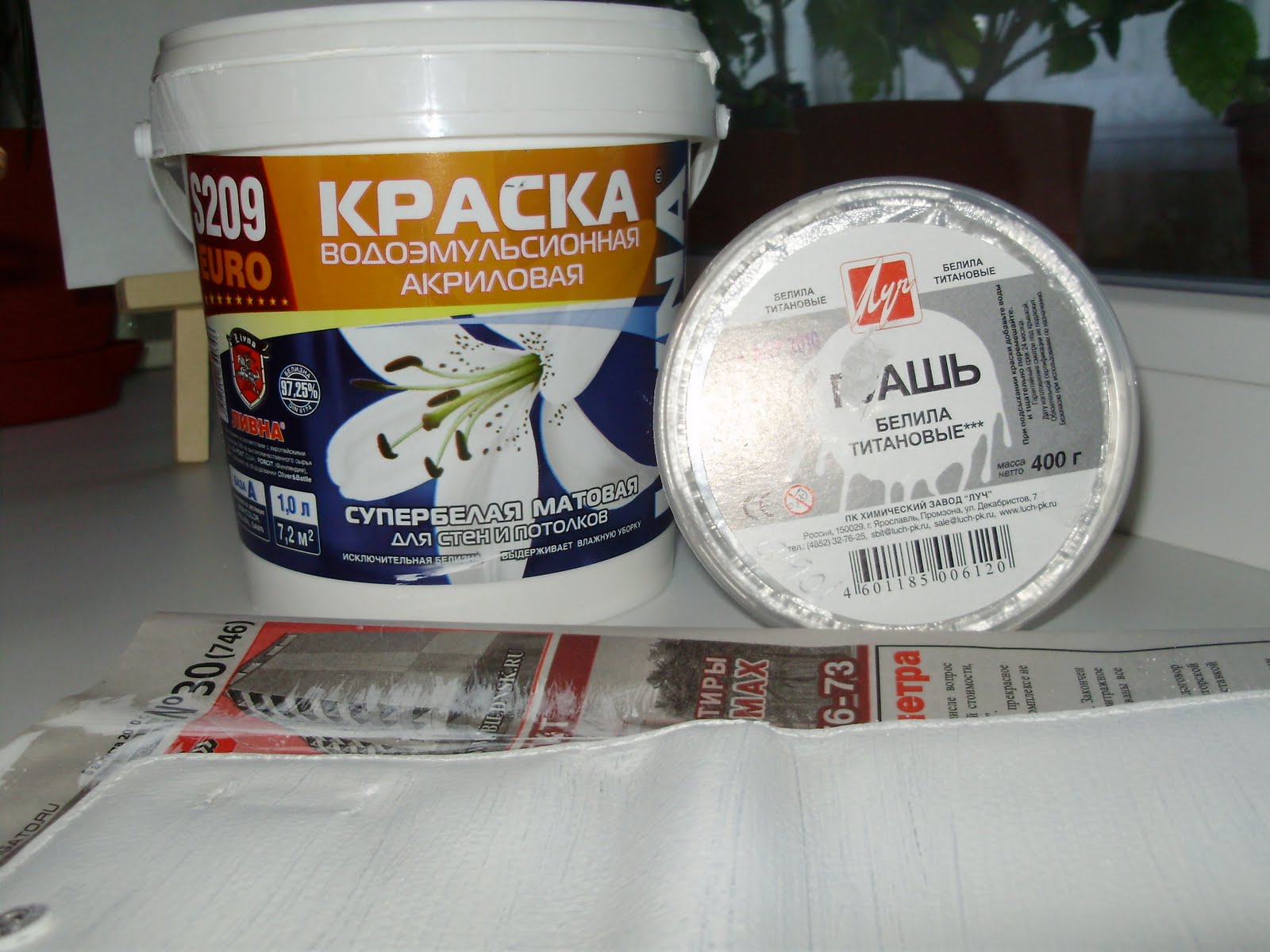 Wasserbasierte Farben und Lacke können bei der Ausführung von Veredelungsarbeiten in den Räumlichkeiten verwendet werden. Sie trocknen in kürzester Zeit. Dank dieser kann eine neue Farbschicht fast sofort aufgetragen werden. Mineralwasseremulsion ist gut geeignet für die Bemalung von Beton, Ziegeln.