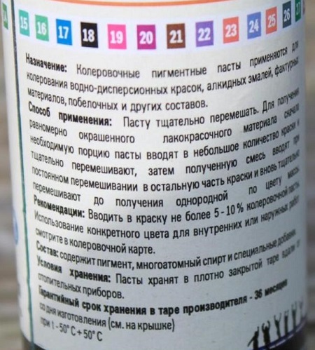 - Konzentrat mit flüssiger Konsistenz für Emulsions- und Dispersionsfarben. Sie eignen sich daher für die Grundbasis, die aus Wasser besteht.