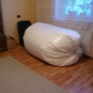 - Synthetischer Füllstoff. Dies kann als professioneller Polystyrol-Schaumfüller (in Form von sehr kleinen leichten Kugeln, die etwa dreihundert Liter benötigen) und als kostengünstiges Material wie Schaumgummi, die wohl viele zu Hause finden werden.