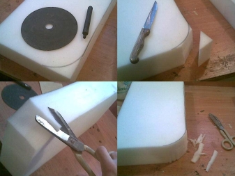 Es ist sehr bequem, den Schaumgummi mit einem scharfen Messer zu schneiden, ein Briefpapier oder ein Messer, das für das Schneiden von Linoleum ausgelegt ist, ist für diesen Zweck ideal.