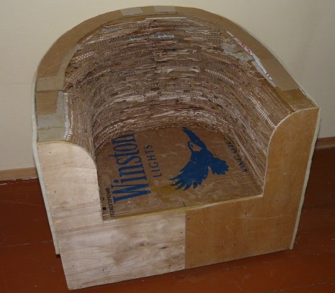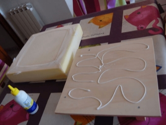 - Wenn der Rahmen des Produkts fertig ist, müssen Sie zum nächsten Schritt gehen - mit Moosgummi bedecken. Um die Seiten des Stuhls abzudecken, sollte der Schaum dünner sein, aber für die Rücken- und Sitzmatten dick genug.