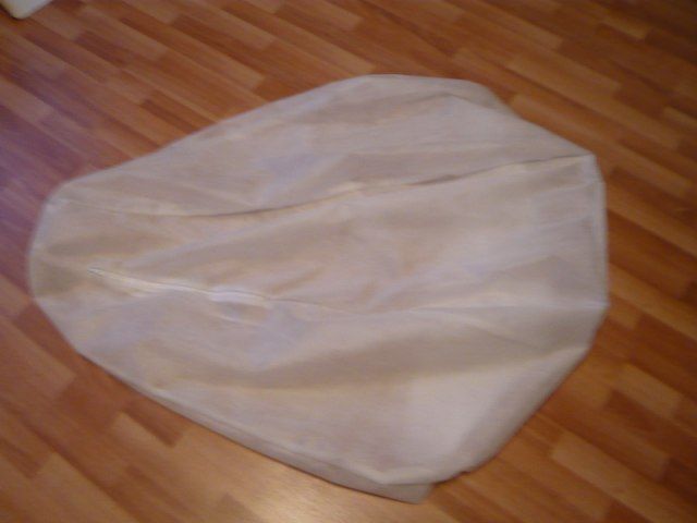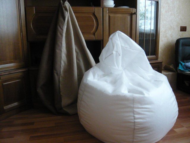 - Das Material, aus dem der innere Beutel hergestellt wird. Es kann natürlich, synthetisch oder halbsynthetisch sein. Die Länge des Stoffes hängt von der Größe des Stuhls ab. Die universelle Größe solcher Möbel ist 90x120 cm, dafür benötigen Sie 2,5-3 m Stoff (die Rollenbreite muss mindestens 120 cm betragen);
