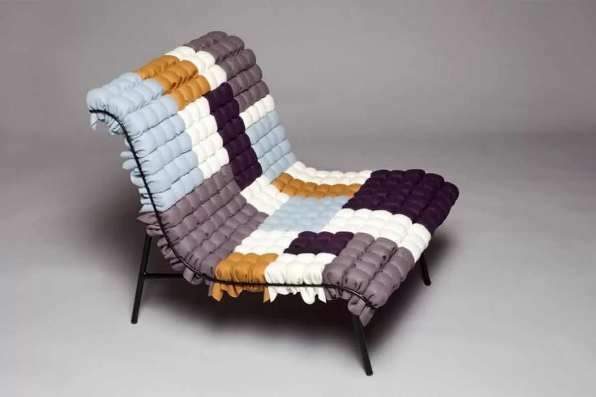 Eine der einfachen Varianten, aber sehr beliebt, originell und bequem ist der Bag Chair, der aus Schrott hergestellt werden kann. Eine andere Option - die Herstellung von Holzrahmen, der mit Schaumgummi ummantelt und mit Stoff bedeckt ist.