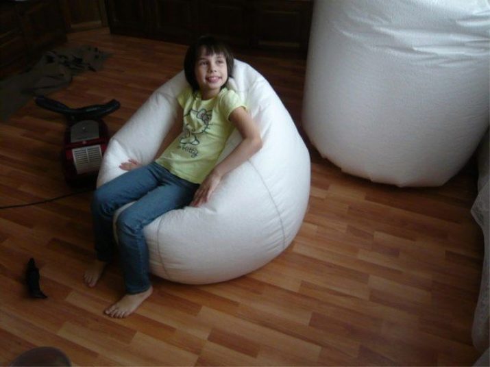 Zu Hause ist es sicherer und am einfachsten, als Füllstoff den Schaumgummi zu verwenden, an den wir gewöhnt sind.Da während des Füllens des Beutels mit Polystyrolschaum eine bestimmte Anzahl von Kugeln verstreut werden kann, können sie in diesem Fall mit einem Staubsauger gesammelt werden. Und Kinder werden am besten gebeten, in einem anderen Raum zu warten (um das Eindringen von Styropor in die Atemwege zu vermeiden).