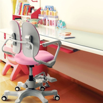 Bei der Auswahl eines Kindes als Arbeitsstuhl müssen vor allem aufgrund der Altersmerkmale der Kinder viele Nuancen berücksichtigt werden. Daher empfehlen Experten in der Regel nicht, Stühle mit Rädern für Kinder im Vorschulalter zu kaufen, sowie für diejenigen, die die Grundschule besuchen. Dies wird einfach erklärt: Sie werden wahrscheinlich auf den sich bewegenden Stuhl als Schreibmaschine reagieren und nicht als funktionales Möbelstück. Aus diesem Grund wird eine geeignetere Lösung in der Anschaffung eines stabilen Stuhls für Vorschulkinder und jüngere Schulkinder gesehen, der ein kleines orthopädisches Kissen für den Rücken besitzt, das den Rücken stützt.