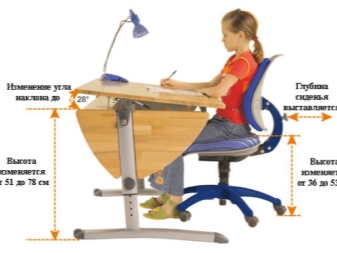 Die Höhe des Stuhls sollte der Höhe des Schreibtisches entsprechen. In dieser Position wird das Kind in der Lage sein, korrekt am Tisch zu sitzen, ohne zu hocken, nicht darauf zu liegen. Der Stuhl selbst wird den Schüler zwingen, die richtige Haltung einzunehmen, was sehr schnell angenehm und vertraut wird.