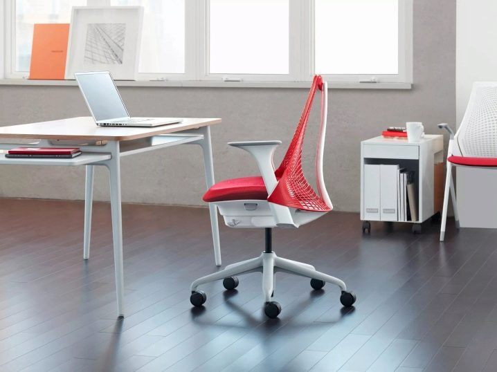 Dieses Modell verbindet Komfort, Schönheit, Funktionalität und Funktionalität. Solch ein Stuhl wird nicht nur ein unentbehrlicher Helfer, sondern auch eine stilvolle Dekoration des Büros. Experten versichern Ihnen, dass Sie bis zu 10 Stunden auf einem solchen Stuhl sitzen können, ohne Beschwerden zu empfinden. Ideale Option für lange Arbeit.