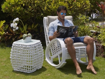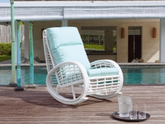 Moderne Rattan Schaukelstühle können jedes Interieur ergänzen. Sie können sich in der Wohnung, in der Nähe des Pools oder auf dem Gartengrundstück befinden. Es gibt mehrere Hauptmodelle von Produkten, die sich in Design, Form des Rückens, Breite und Höhe der Passform unterscheiden. Aber im Grunde sind sie alle so gemacht, dass die Person, die in ihnen sitzt, so bequem wie möglich ist. Sie haben einklappbare Fußstützen und weiche Kissen für einen komfortablen Aufenthalt. Einige Modelle haben eine abnehmbare Abdeckung, die bei Bedarf leicht entfernt werden kann.