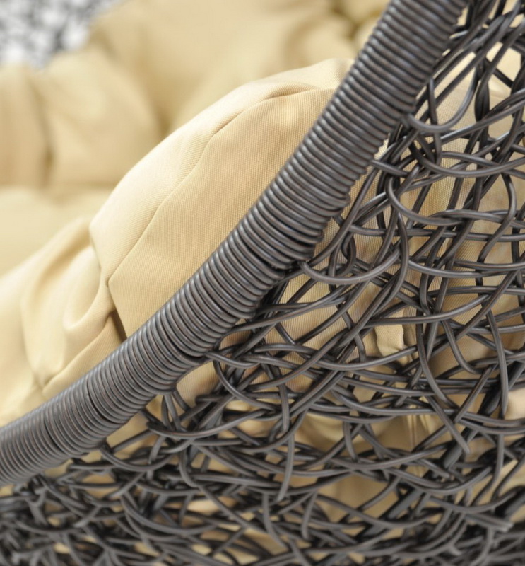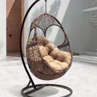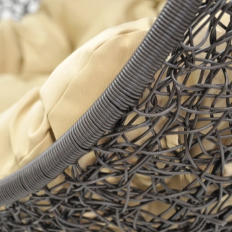 - Viele Leute bevorzugen es, einen Hängesessel zu kaufen Solardas sieht wie ein Weidennest aus. Der Rahmen der Stütze und das Weben selbst ist mit einer braunen Farbe bedeckt, die gegen äußere Einflüsse beständig ist. Sein Preis hängt von der Qualität des Rattans ab und ist normalerweise nicht niedriger als 13000 r.
