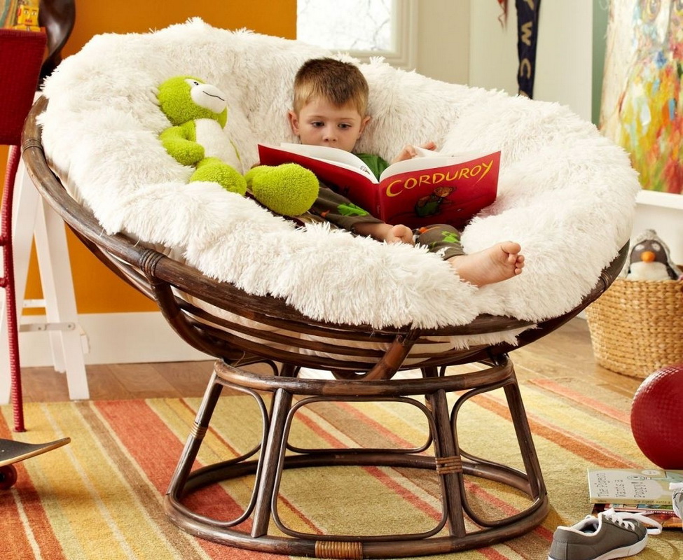 - Der beliebteste Rattanstuhl - Papasan. Es hat eine runde Basis mit einem niedrigen Rücken, der auf einem Korbständer ruht.Dieses Modell hat keine gebogenen Läufer, die traditionelle Produkte sind. Der spezielle Mechanismus, der in der Basis verborgen ist, erlaubt dem Stuhl zu schwingen. Der Sitz selbst kann sich um seine Achse drehen. Zum Lieferumfang gehört ein weicher Bezug. Kosten - 12000 p.