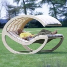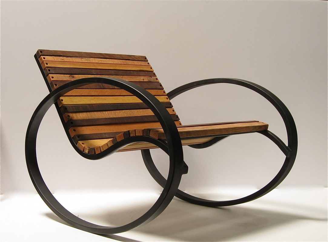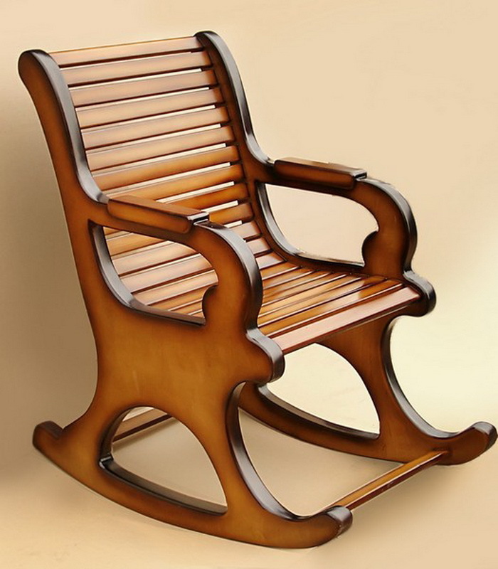 Schaukelstuhl aus Holz, vielleicht die einfachste und einfachste Variante nach dem Gebrauch des alten Stuhls. Besondere Beliebtheit erlangten Gartenbänke. Ihre Besonderheit ist, dass sie um 90 Grad zusammenfallen, wenn Sie sich zurücklehnen. Sitzen wird auf seinem Rücken mit seinen Füßen im Himmel sein. Wenn Sie sie nach vorne ziehen, steht die Bank in der gewohnten Position. Die Herstellung von Läufern für eine solche Bank ist jedoch etwas komplizierter. Amateurismus werden sie nicht tolerieren.