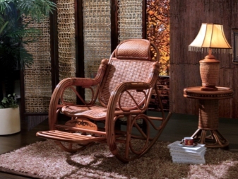 Rattan und Weide werden am häufigsten zum Weben verwendet. Rattan ist eine Pflanze aus der Familie der Palmen. Die Möbel sind von Feuchtigkeit gut verträglich, daher wird es bevorzugt, sie unter freiem Himmel zu installieren.Es ist umweltfreundlich und hat ein ausgezeichnetes Aussehen. Die Reparatur solcher Möbel kostet jedoch aufgrund der Materialkosten eine Menge Geld. Eine günstige Option ist Weide. Es ist weniger flexibel und instabil gegenüber Feuchtigkeit, wie Rattan, aber zugänglicher und daher üblich. Perfekt für Heimtextilien.