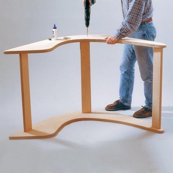 Betrachten Sie die Herstellung von Tischbechern. Wir brauchen eine Stichsäge oder eine Metallsäge, Sandpapier oder Schleifer, Maßband, Konstruktionswinkel, Ebene, Schraubendreher mit einer Reihe von Bohrern, Hammer, Kitt, Bleistift und Pinsel. Die Wahl der Materialien ist wichtig für die Eigenschaften des fertigen Produkts. Wir werden die Seitenteile aus Sperrholz und die Lamellen aus jedem elastischen Holz machen.