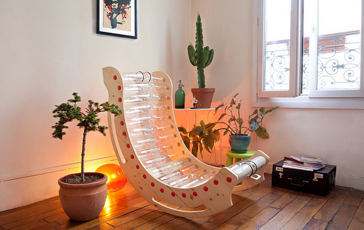 - Aus Plastikflaschen. Die ökologische Bewegung gewinnt an Dynamik. In diesem Sinne bieten sie zunehmend Recycling von Abfällen an. Plastikflaschen sind keine Ausnahme. Die Hauptsache ist, eine Menge von ihnen zu haben und sie sehen ästhetisch ansprechend aus.
