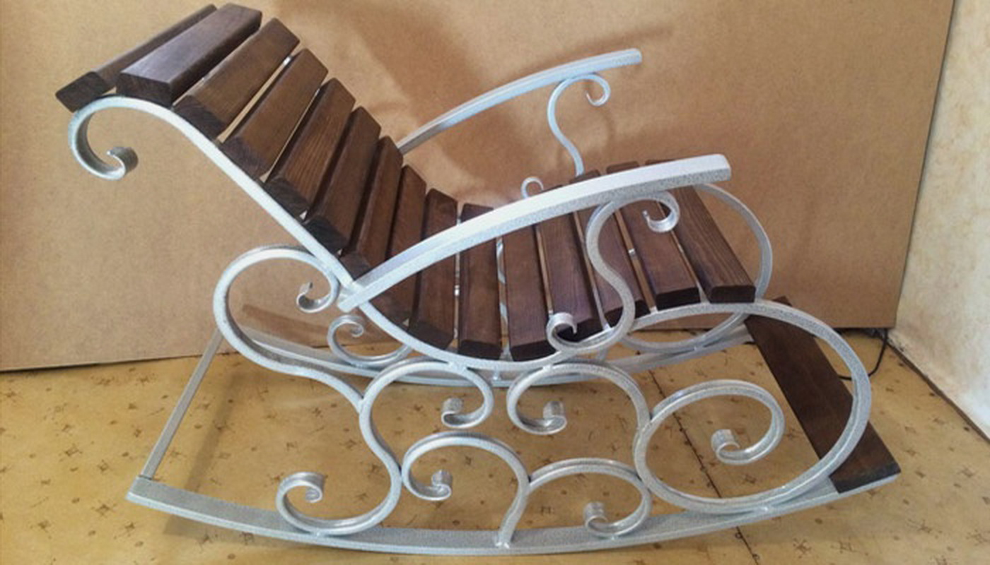 - Metallisch. Die ausgezeichnete Entscheidung für die Straße dank hoher Verschleißfestigkeit, Haltbarkeit und Widerstandsfähigkeit gegenüber widrigen äußeren Bedingungen. Schmiede Schaukelstühle erfordern jedoch spezielle Ausrüstung und Fähigkeiten, und die fertigen Produkte sind schwer.Sie können die Möglichkeit in Betracht ziehen, ein Profilrohr herzustellen, es ist besser, wenn in seinem Abschnitt eine Ellipse vorhanden ist. Um das Gewicht der Struktur zu reduzieren und somit das Trägheitsmoment zu reduzieren, ist der Sitz aus einem anderen Material hergestellt.