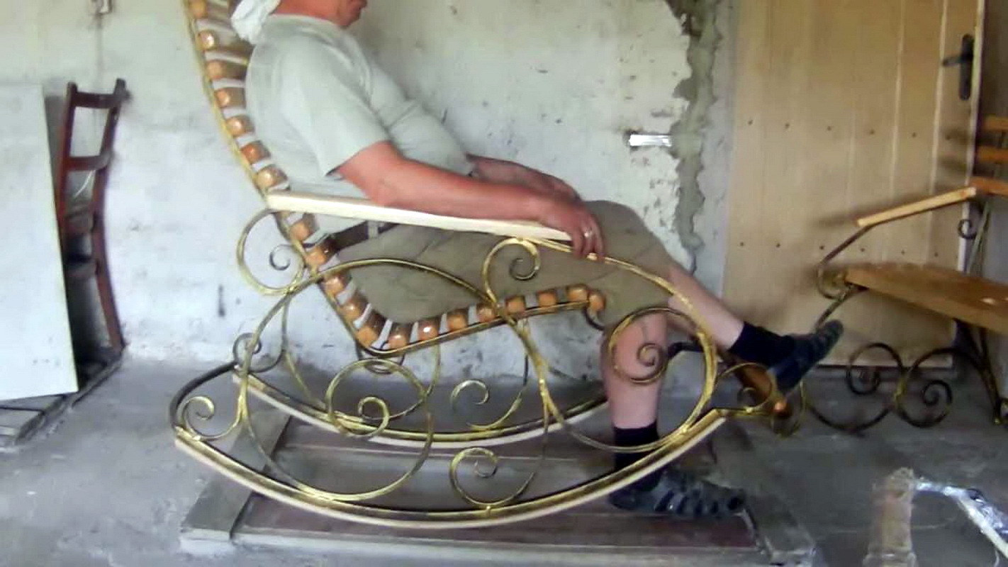 Der Hauptnachteil von Metallmöbeln ist sein Gewicht. Daher lohnt es sich darüber nachzudenken, wie man es reduzieren kann. Wenn der Schaukelstuhl aus Metall zu Hause verwendet wird, sollten Sie einen Gummiband auf die Schienen kleben, um den Boden vor Kratzern zu schützen.