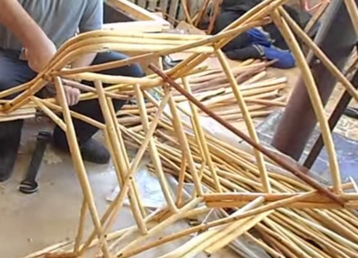 Wicker Stuhl aus Weide, Weide oder Rattan ist nicht so einfach zu machen. Bevor Sie mit der Arbeit beginnen, müssen Sie das Material vorbereiten. Die Reben werden während der kalten Jahreszeit geerntet. Die zu diesem Zeitpunkt gesammelten Rohstoffe sind einfacher zu verarbeiten. Die geernteten Reben stehen 70-120 Stunden in senkrechter Position im Freien. Rohstoffe werden nach Bestimmungsort sortiert. Für das Gerüst werden dicke Äste mit einem Durchmesser von 5 cm gewählt, für das Geflecht passen 1 cm dicke Stäbe.