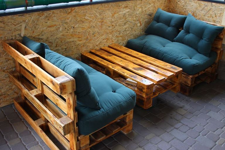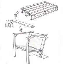- Armlehnen und Rückenlehne müssen ebenfalls aus Paletten hergestellt werden, aber dafür müssen sie teilweise demontiert werden. Die Höhe des Rückens wird vom Meister selbst festgelegt.