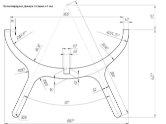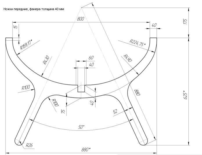 - Basierend auf den Zeichnungen, müssen grundlegende Details vorbereiten. Am schwierigsten ist die Herstellung von Seitenstützen. Daher müssen Sie vor dem Schneiden eine Vorlage in Originalgröße dieses Elements drucken oder es unabhängig auf ein großes Blatt Papier zeichnen.